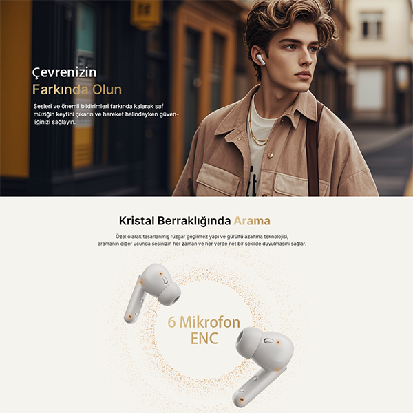 6 Mikrofonlu ENC Teknolojisi: Rüzgar ve ortam seslerini filtreleyerek kristal netliğinde çağrılar sağlar.