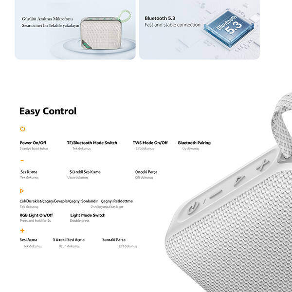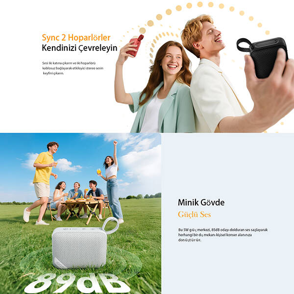 TF kart desteği ve Bluetooth 5.3 bağlantı teknolojisi sayesinde hem kablosuz hem de hafıza kartı üzerinden müzik dinlemek mümkündür.